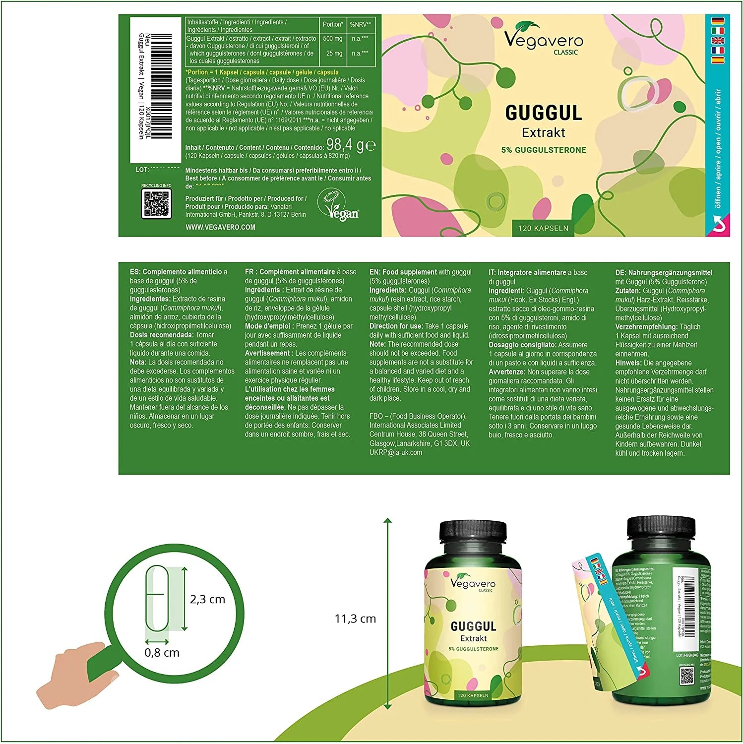 Guggul (Commiphora mukul) resin extract, rice starch, capsule shell (hydroxypropylmethylcellulose)
